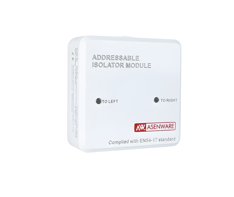 O Módulo Isolador Endereçável da Asenware pode ser configurado para operar com a Série AW-FP100 de Painéis de Alarme de Incêndio Endereçáveis.