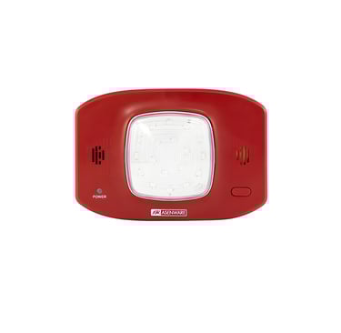 Durante um incidente de incêndio, ele notifica as pessoas para evacuar através de alarmas sonoros eficazes, sinalização visual por strobo e mensagens de voz personalizadas pelo usuário.