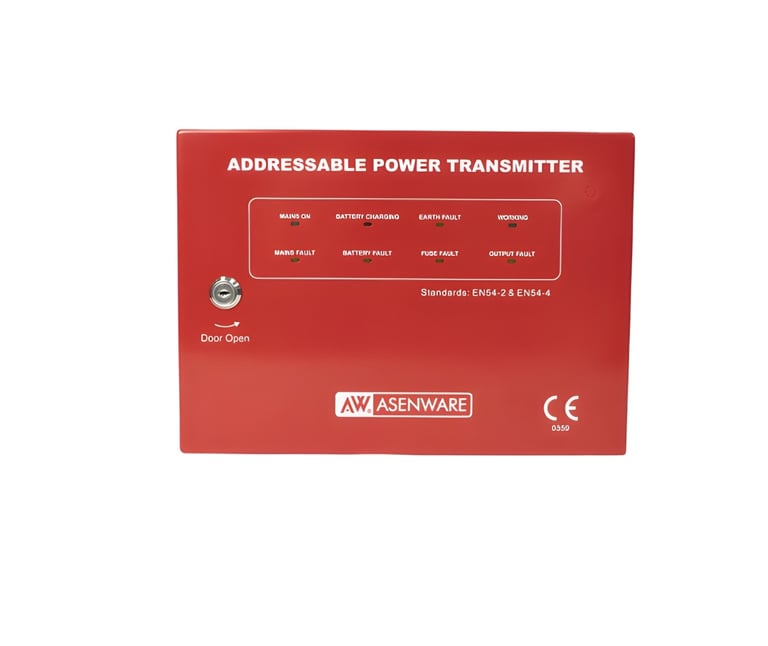 O AW-D121 é um transmissor de potência utilizado com o painel de alarme de incêndio endereçável.