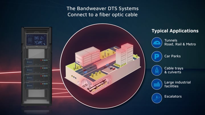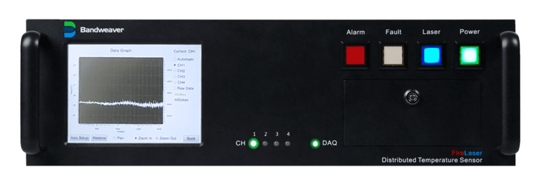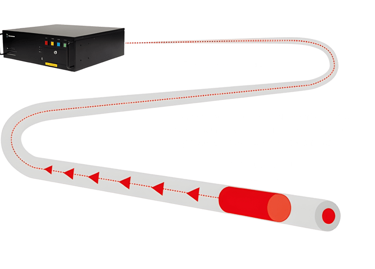 O DTS Bandweaver T-Laser mede a temperatura ao longo de uma fibra óptica usando o princípio de Reflectometria Óptica no Domínio do Tempo (OTDR). Pulsos de laser são enviados pela fibra, e a luz refletida é analisada para identificar o espalhamento Raman.